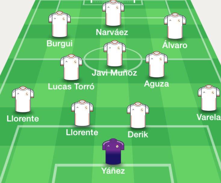 Defensas: Derik, Varela, Noblejas, León y Diego Llorente