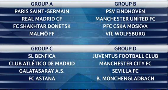 26.4 ManC-Real, 27.4 Atleti-Bayern
