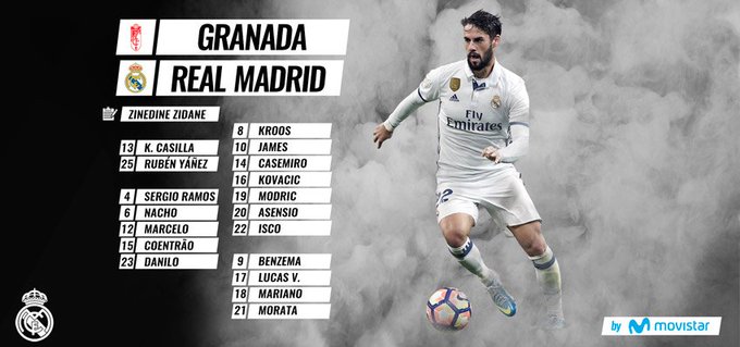 Varane sai jälleen pientä tälliä, joka ei kuitenkaan ole ZZ:n sanojen mukaan mitään vakavaa. Ranskalaista ei kuitenkaan huomenna Granadassa nähdä. Pepe on palannut jo harjoituksiin, mutta todennäköisesti sympaattinen portugalilainen nähdään kentillä vasta viikon kuluttua. Marcelo kaipaisi lepoa, mutta Carvajalin loukkaannuttua ja kahden topparin ollessa sivussa, ei tuuraajaakaan ole Coentraoa lukuunottamatta - josta ZZ totesi, että mies on huomenna mukana...Keskikentältä CMK-kolmikko saanee jokainen lepoa, kuten myös loukkaantunut Bale ja CR & Benzema. Näin ollen avaus tulee olemaan liki täysin erilainen kuin viikolla el Derbissä. Morata, Asensio, Lucas, Isco, Kovacic ja James saanevat jälleen kaikki mahdollisuutensa.