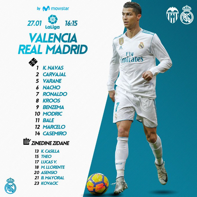 Kirjoittaja Aihe: Jornada 21: Valencia CF - Real Madrid 27.1.2018  (Luettu 6390 kertaa)