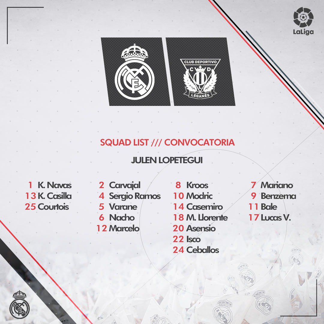 Mahdollinen avaus: Navas; Carvajal-Varane-Ramos-Marcelo; Modric-Casemiro-Kroos; Bale-Benzema-Asensio.